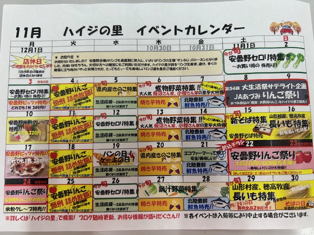 本日17日から19日(日)までハイジの里ご愛顧感謝祭をハイジの里で実施しております。そして18日(土)は、いつも火曜日に実施している詰め放題をなんと9時から実施します!そして11時より餅つきも実施いたします。お餅がつきあがり次第お振舞い致しますが、なくなり次第終了となりますのでご了承ください。今週末はとてもいい天気に恵まれそうですので、お出かけ日和になりそうですね。ぜひハイジの里へ新鮮なお野菜や果物を買いにお越しください。