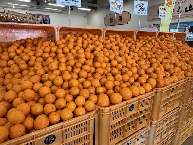 本日の詰め放題は最近では恒例の河内晩柑(ジューシーオレンジ)の詰め放題です。毎週のように詰め放題に参加していただいいるお客様も多くいらっしゃいます。それだけこの河内晩柑(ジューシーオレンジ)がおいしい!ということですね。河内晩柑の詰め放題も残り数回となってきました。詰め放題楽しみましょう!