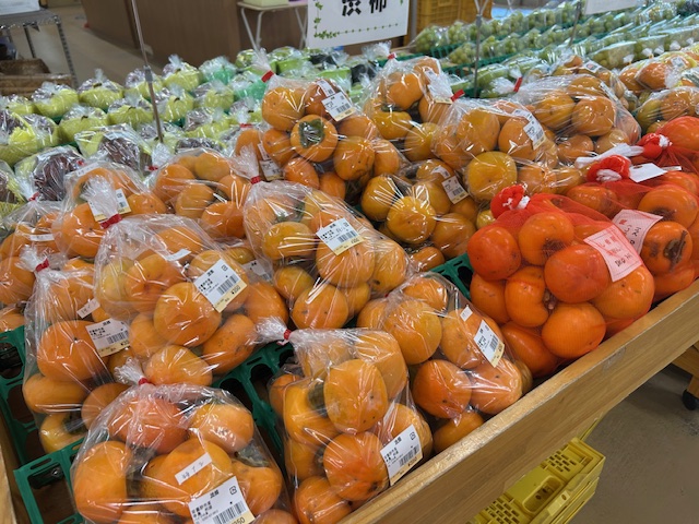 干し柿用の柿がたくさん入荷しています。この時期は柿を軒下に干している家庭もよくみます。この時期ならではの風物詩ですね。場所は分けてありますが、甘柿も売っていますのでお買い求めの際はお間違えのないようお気を付けください。