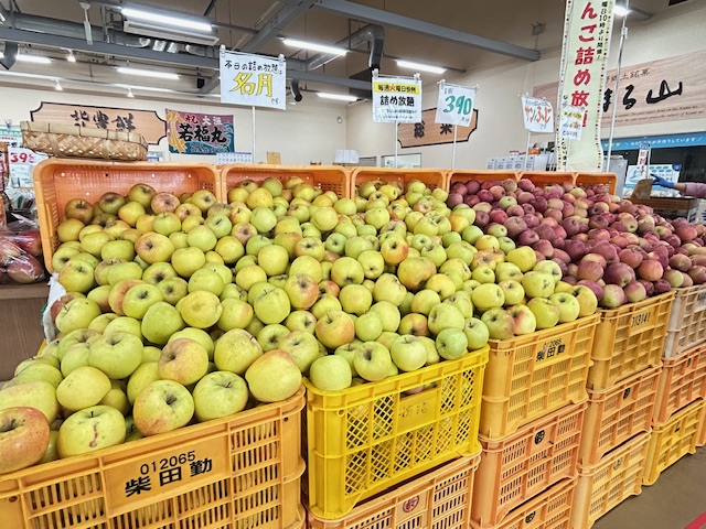 やってきました!毎週火曜日恒例りんご詰め放題の日です。本日のりんごは「名月」と「サンふじ」です。まだまだりんごがおいしい季節です。そのまま食べるのに少し飽きてしまったらリンゴジャムやアップルパイを作るのもおすすめです。安曇野産のおいしいりんごたくさん堪能してください。
