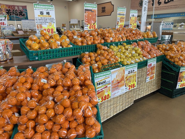 本日よりセンターキッチン前にて柑橘特集を実施しております。柑橘の本場愛媛や和歌山から直送されてきたたくさんの種類の柑橘が並んでいます。愛果48号(紅プリンセス)も入荷してきておりハイジの里でも人気の品種です。人気の品種はなくなるのが早いですので気になる柑橘を見かけたら迷わずゲットしてください。