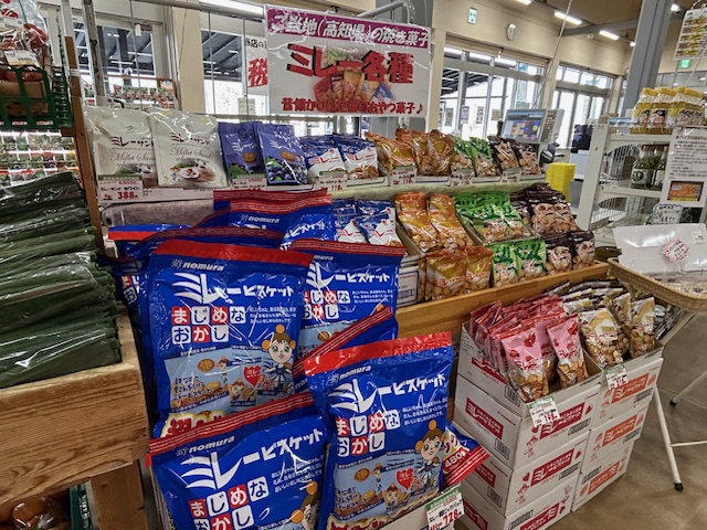 こちらも大人気商品‼高知の提携直売所「とさのさと」から人気焼き菓子「ミレービスケット」が入荷しています。定番のミレービスケットやわさび風味、いちごみるく味など数種類をご用意しています。毎回大人気で気付いたら売り切れているビスケットです。ぜひいろんな味を楽しんでお好みの味を見つけてください。