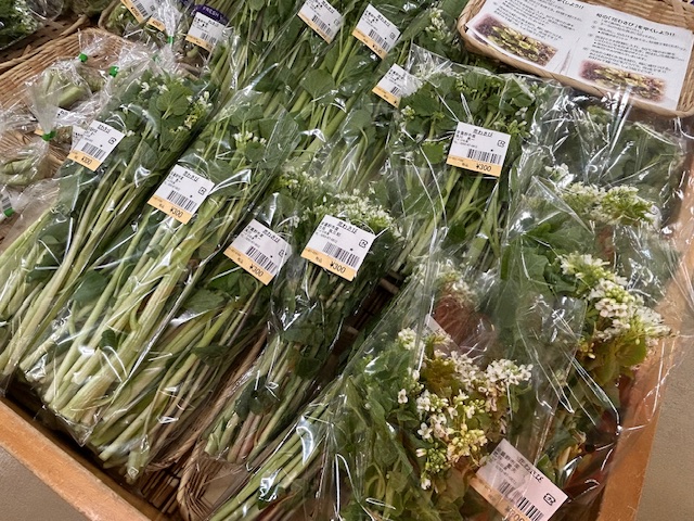 花わさびが入荷してきています。花わさびも旬のピークが少しずつ終わりに近づいてきていますので、花わさびが好きな方はお早めに購入されることをおすすめします。花わさびを購入される際は午前中の御来店をおすすめしています。ピリッと辛い春の味、花わさびを堪能してください。