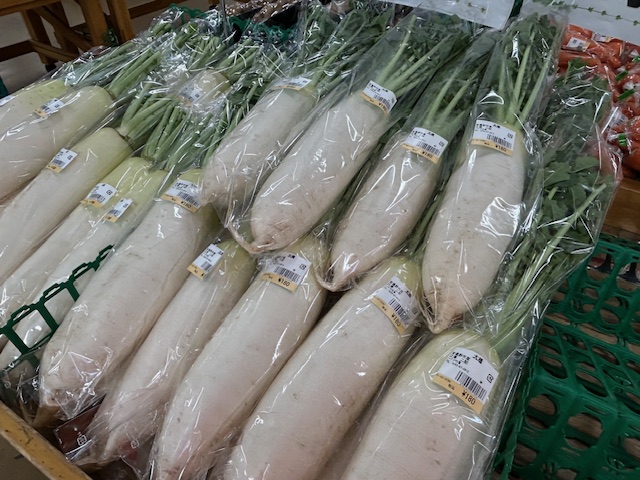 暖かくなってきて店内にはたくさんの地元産の野菜が入荷するようになってきました。大きな大根も入荷してきています。しっかりとした太さがあり立派な大根です。サラダや煮物など様々な食べ方で地元産の野菜を味わってください。